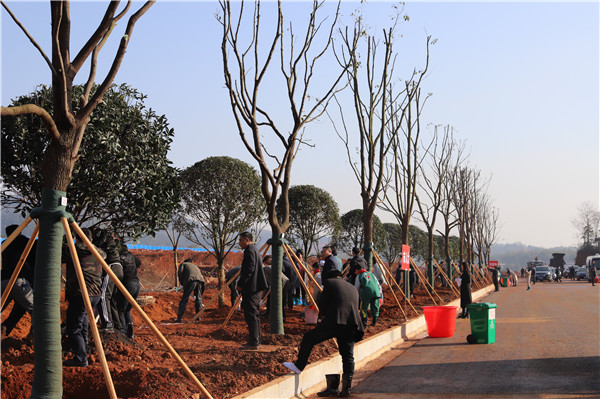 經(jīng)過一上午的忙碌,植樹隊伍共280余人使300余株欒樹、樟樹、桂花樹、櫻花樹等優(yōu)質(zhì)樹苗、樹種“安家落戶”。春風(fēng)拂過,一株株新栽種的苗木等待著吐露新芽,一個個綠色希望在孕育成長……