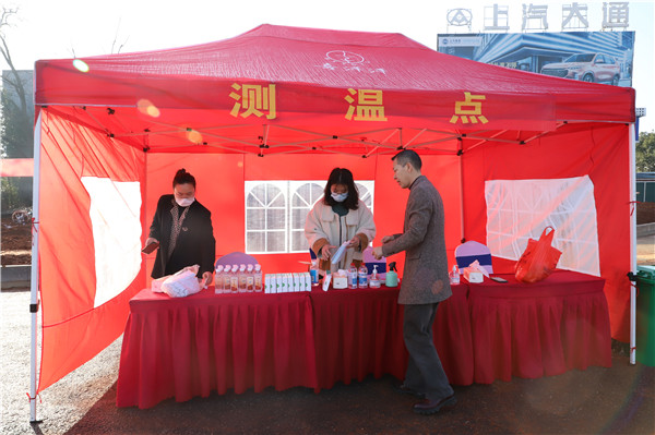 工作人員發(fā)放口罩,并對參加活動的人員進(jìn)行測溫