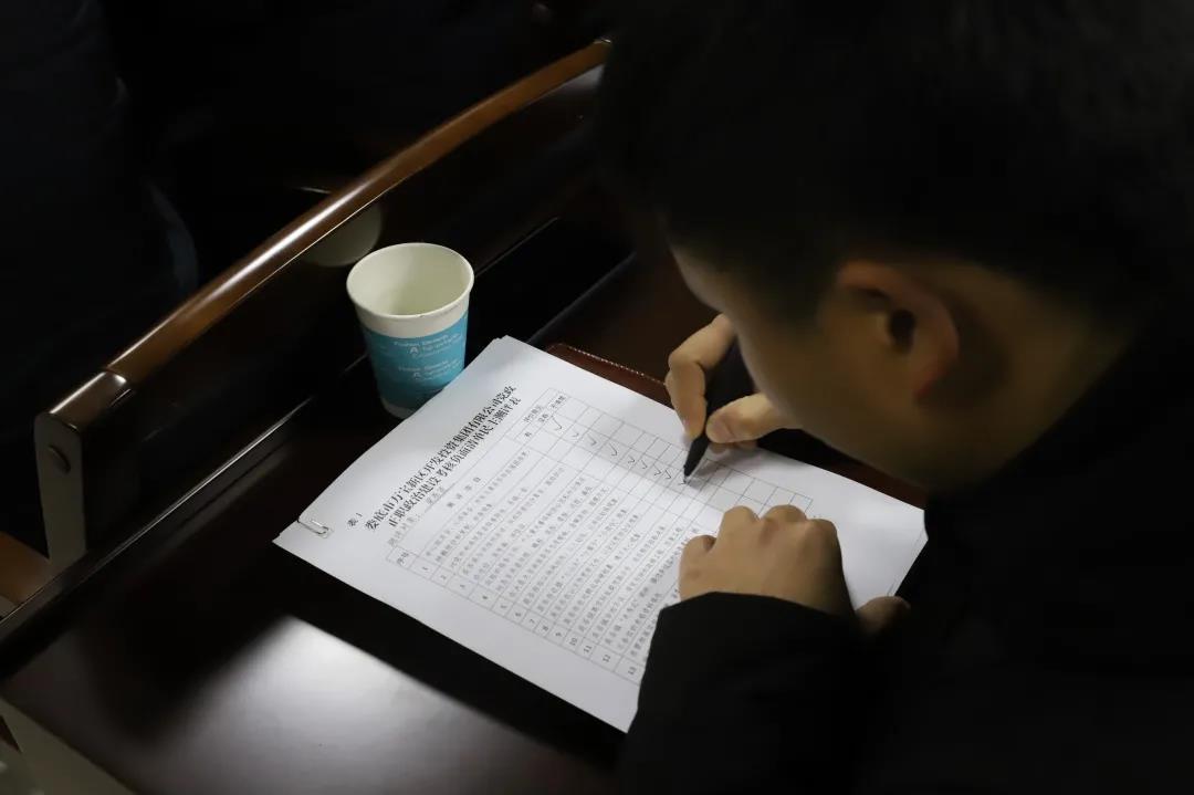 總經(jīng)理徐業(yè)波對領導班子成員進行測評